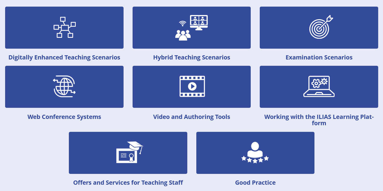 Our Digital Teaching toolbox is designed to support you in using digital media in your teaching in a targeted and effective way. The toolbox is a collection of many instructions, tutorials and explanatory texts about ILIAS, web conference systems, the use of tools for media production and much more.