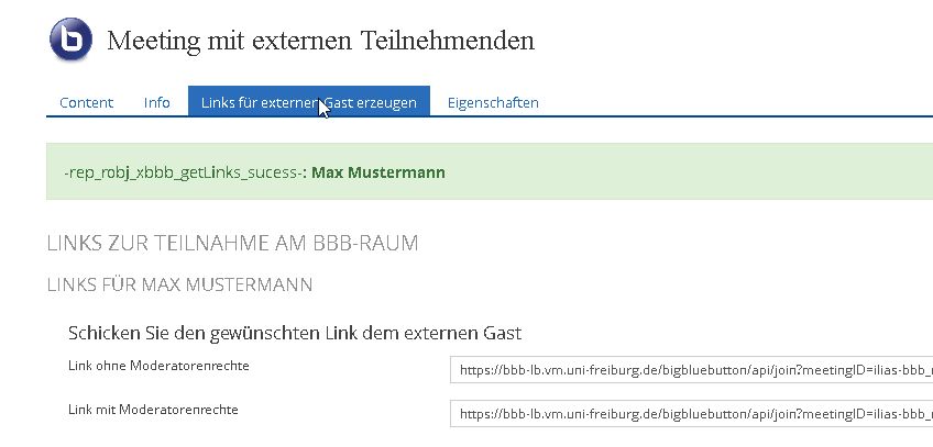 In the settings of the BigBlueButton room, you can also specify external guests for whom a direct link to the meeting room is then created.